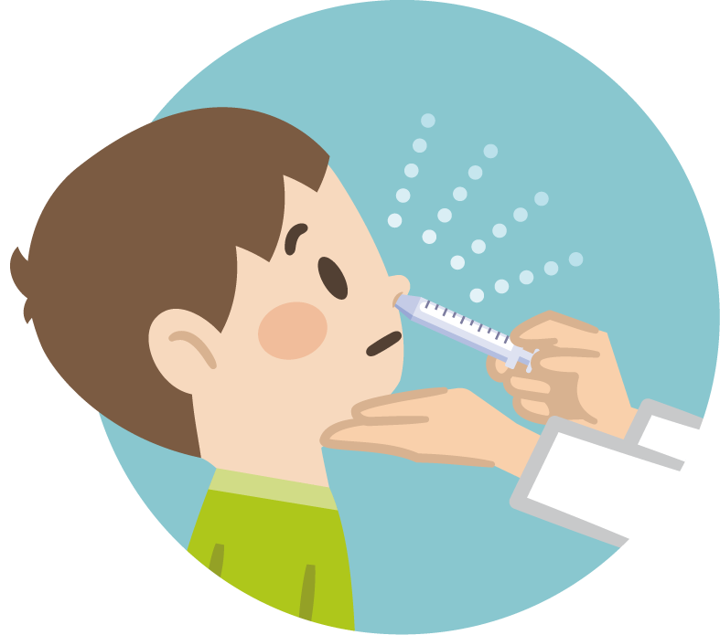 鼻に噴霧するタイプのワクチンです。注射が苦手な方やお子様には負担の少ない方法です。